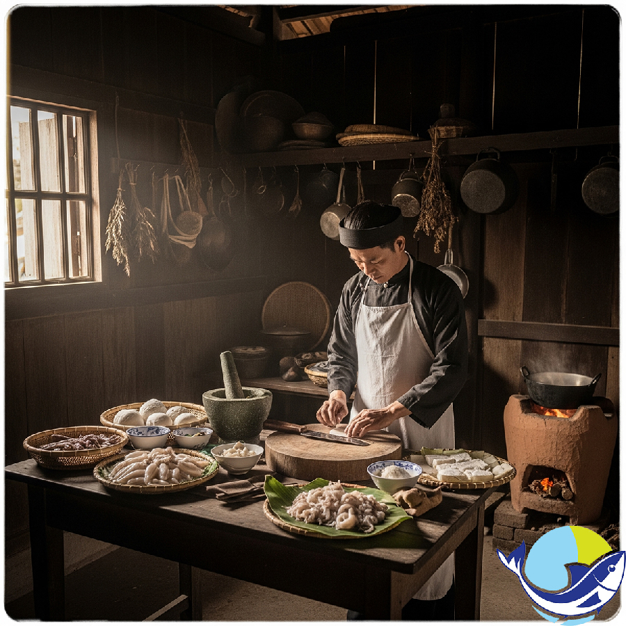 Bước 2: Giã/Xay và Tạo Hình Chả Mực